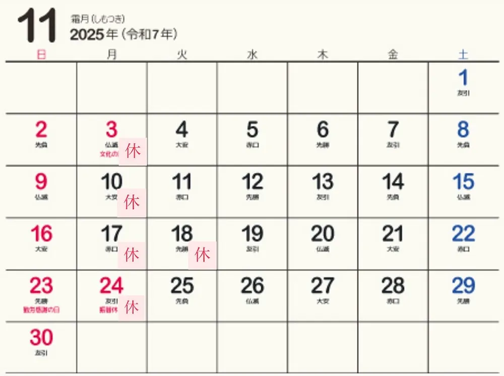 年内は12月30日まで営業、12月31日~1月1日まで休業、1月2日より営業致します。